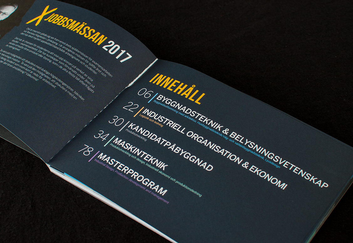Together with Ellen Brage we created the style for Xjobbsmässan (final thesis fair) 2017. I was in charge of the design of the cover of the fair booklet and its internal pages, as well as a few posters promoting the event. This project was for and in cooperation with Jönköpings Tekniska Högskola (JTH)